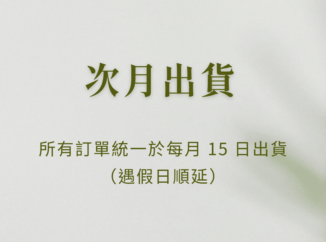☙ 每月 15日依訂單順序出貨(遇假日順延)。